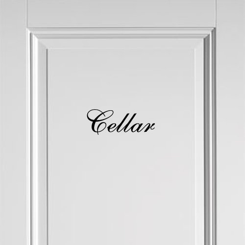 Sticker met de tekst Cellar, voor op de deur naar de kelder. Het lettertype bij dit product is “Shelley Allegro”.