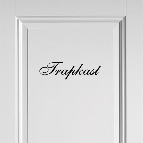 Sticker met de tekst Trapkast, leuk voor op de deur naar de kast onder de trap. Het lettertype bij dit product is “Shelley Allegro”.