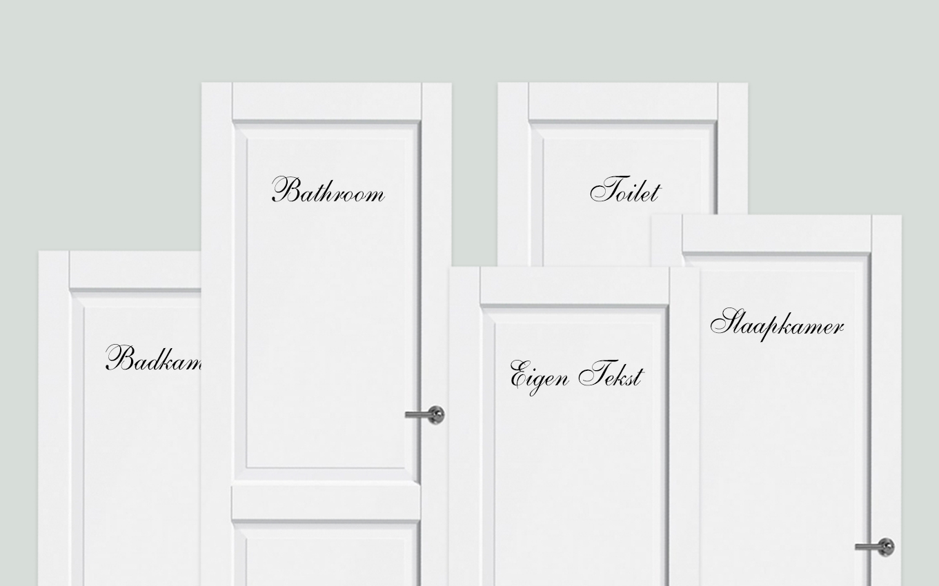 In deze collectie vind je deurstickers en tekststickers in verschillende stijlen. Denk aan sierlijke letters, strakke typografie of speelse ontwerpen voor kinderen. Alle stickers worden gemaakt van hoogwaardig vinyl, zijn eenvoudig aan te brengen en geschikt voor zowel binnen- als buitengebruik.